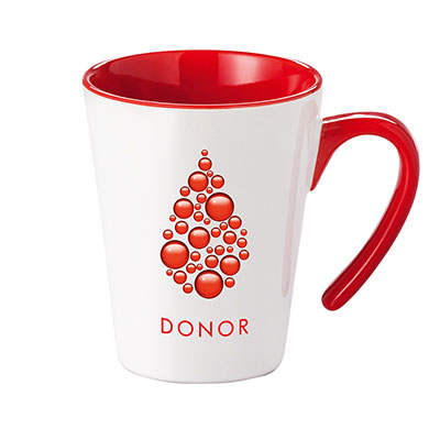 Kubek reklamowy wyróżniający się zastosowaniem innowacyjnego uchwytu z tylko jednym punktem zaczepienia. Uchwyt oraz wnętrze dostępne w kilku wersjach kolorystycznych.